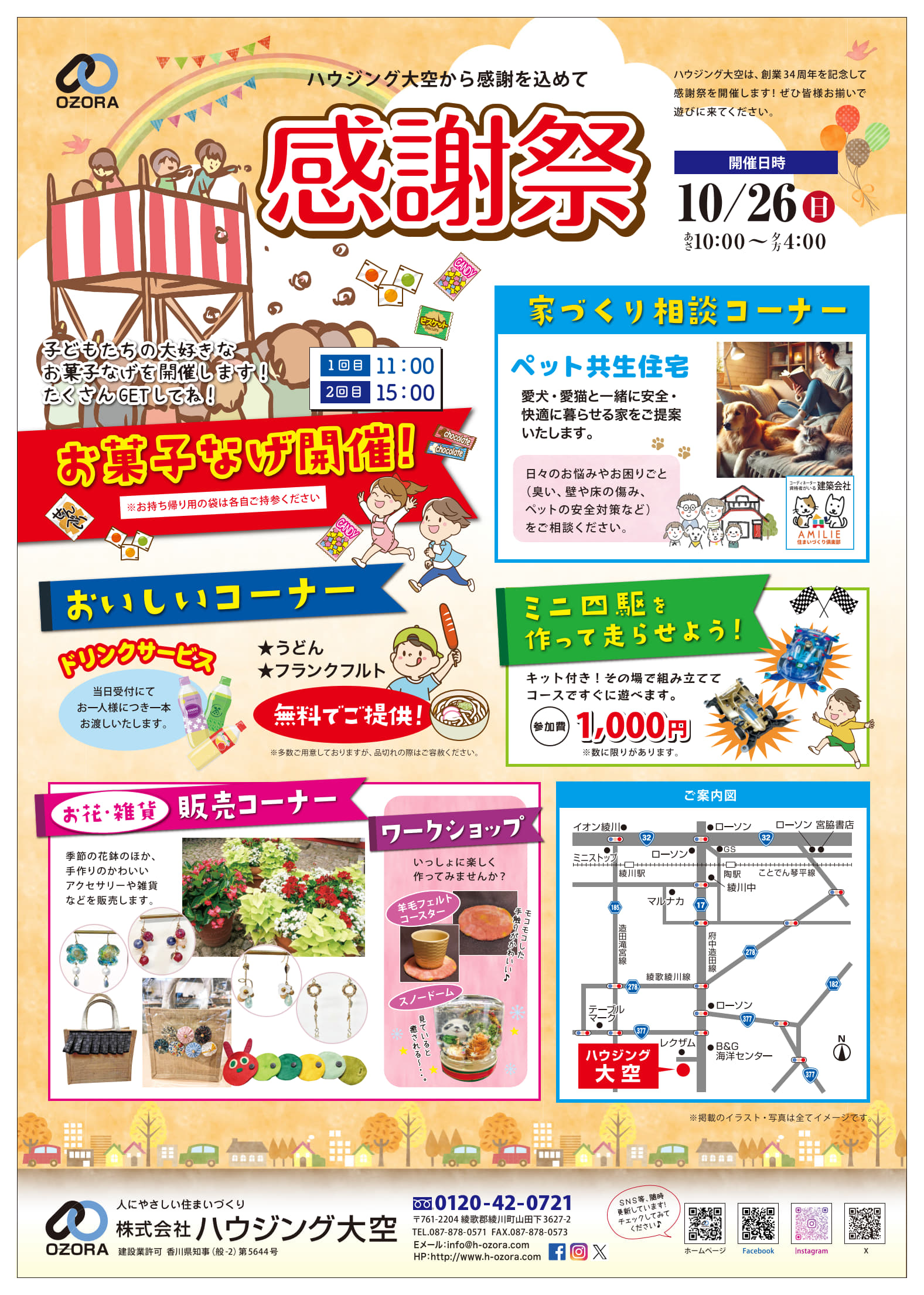 10月7日(土)、弊社駐車場にて、約4年ぶりとなります感謝祭を開催いたします。